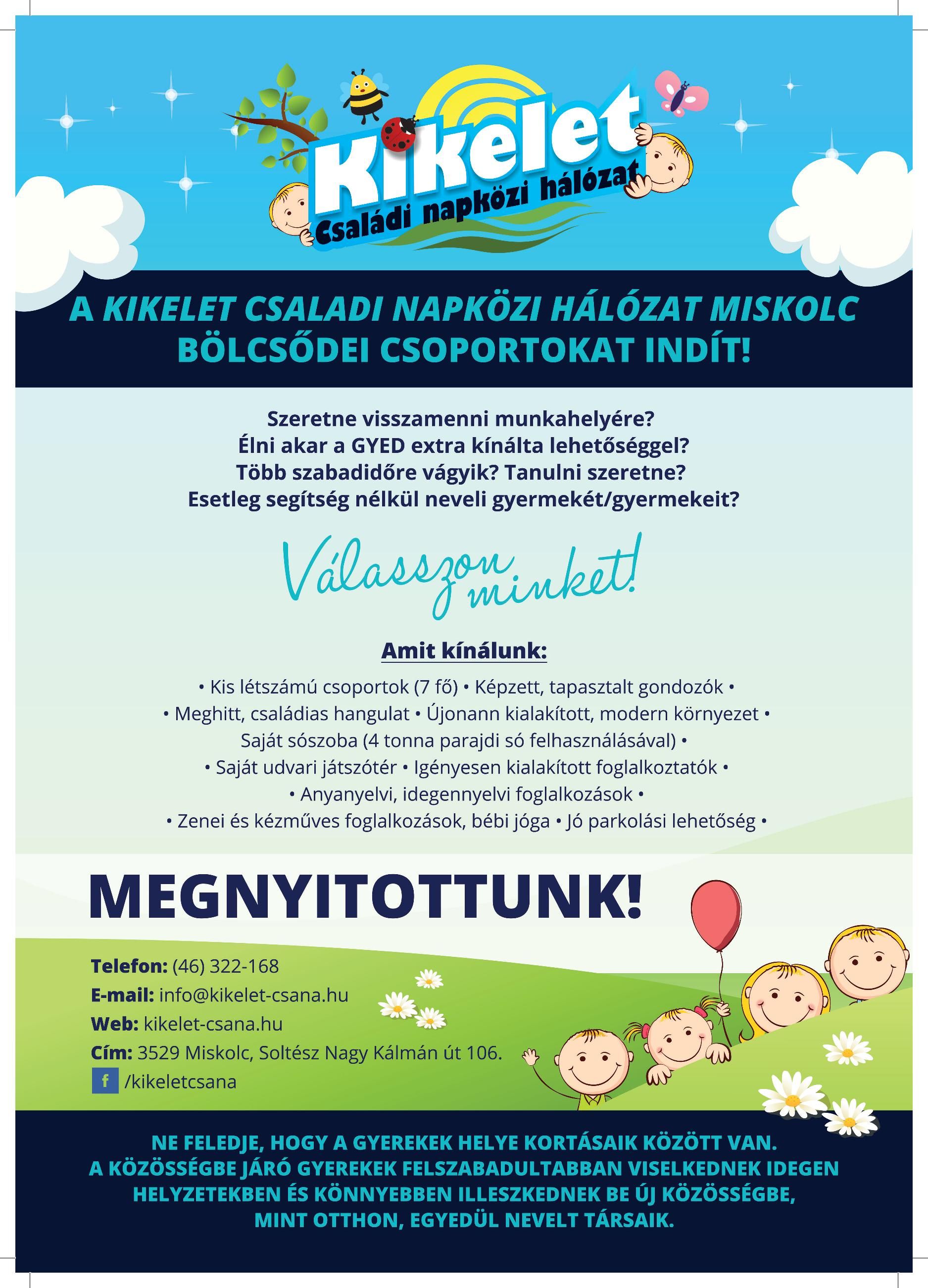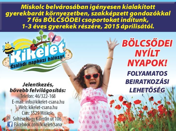 A Kikelet Családi Napközi Hálozat Miskolc, bölcsödei csoportokat indít!